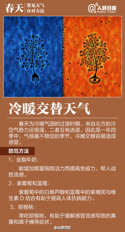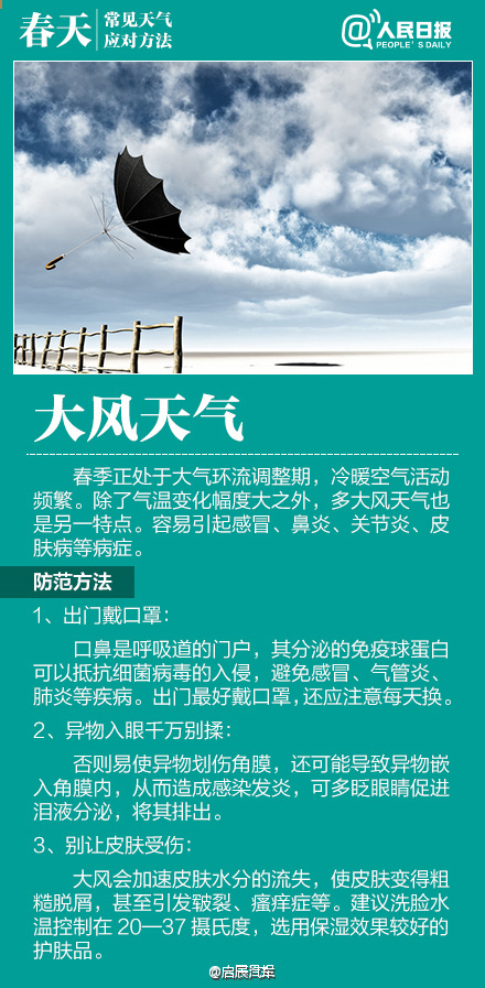 春季天氣調(diào)皮,昨天還日光融融閑賞花,今日就寒風(fēng)瑟瑟緊添衣!大風(fēng)、沙塵、陰雨等交替上演,讓感冒、過敏、關(guān)節(jié)炎等進(jìn)入高發(fā)期。今天#世界氣象日#,四張圖教你應(yīng)對(duì)春季多變天氣!