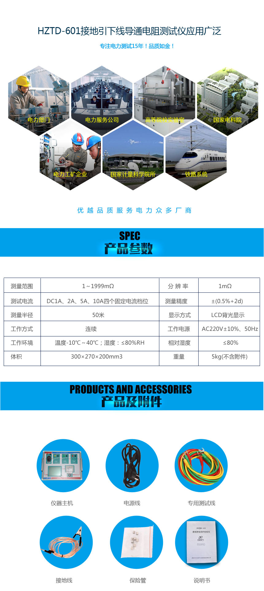 ZTD-601接地引下線導通電阻測試儀作者:合眾電氣發布時間:2016-10-19瀏覽量:9785 次字體顯示:【大】【中】【小】 上一篇: HZBP-400三倍頻電源發生器下一篇: HZJY-621可調高壓數字兆歐表