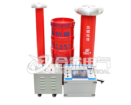 串聯諧振作為串聯諧振系統的一部分組成,其工作原理也基本類似。我們已知,在回路頻率時,回路產生諧振,此時試品上的電壓是勵磁變高壓端輸出電壓的Q倍。Q為系統品質因素,即電壓諧振倍數,一般為幾十到一百以上。先通過調節變頻電源的輸出頻率使回路發生串聯諧振,再在回路諧振的條件下調節變頻電源輸出電壓使試品電壓達到試驗值。由于回路的諧振,變頻電源較小的輸出電壓就可在試品CX上產生較高的試驗電壓。