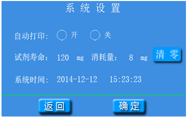 清零:清除當前累計的滴定水分含量的總和。更換試劑后應點擊該按鈕清除數據。否則會造成不能正確判斷試劑的使用情況。