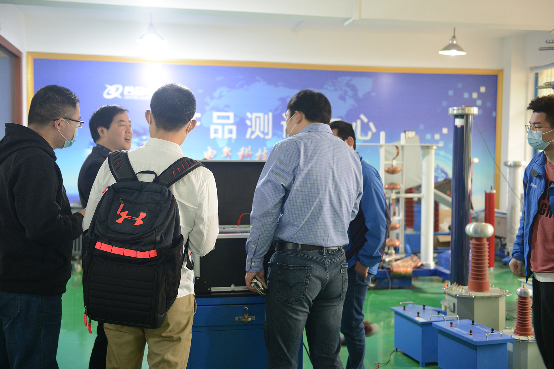 在我司專業(yè)的產(chǎn)品測試試驗中心,我司技術(shù)工程師,為王教授一行現(xiàn)場講解了產(chǎn)品主要技術(shù)參數(shù),以及演示產(chǎn)品的試驗操作步驟,通過進一步的交流學習之后,王教授在現(xiàn)場也進行了試驗操作。通過現(xiàn)場的實際操作試驗,通過試驗結(jié)果的對比,王教授對我司生產(chǎn)的變頻串聯(lián)諧振耐壓試驗裝置,沖擊電壓發(fā)生器產(chǎn)品質(zhì)量以及智能化操作過程給與了高度評價。