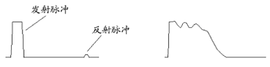 (7)增益調節(jié):用于調節(jié)輸入、輸出脈沖幅度大小,使用時應根據(jù)屏幕顯示波形進行調節(jié)。調節(jié)過小時,脈沖反射很小,甚至無法采樣,如圖3。調節(jié)過大時,反射脈沖相連與基線無交點甚至基線會變成斜線,如圖4。一般采樣前,增益調節(jié)旋鈕旋轉1/3左右,然后根據(jù)波形大小再進行調節(jié),重新采樣。