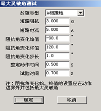 該測(cè)試專門用于測(cè)試距離保護(hù)的“最靈敏阻抗角”。按傳統(tǒng)方法進(jìn)行,阻抗角變化始值、終值設(shè)置應(yīng)分別設(shè)置在保護(hù)的兩動(dòng)作邊界外,且包含最大靈敏角。因?yàn)闇y(cè)試點(diǎn)很多,若不知道保護(hù)實(shí)際動(dòng)作的邊界整定值,為節(jié)約時(shí)間,在第一次測(cè)試時(shí)將變化步長(zhǎng)設(shè)置得大一些,可以測(cè)試出大概的邊界。然后將阻抗角變化始值、終值設(shè)置在已知的兩邊界附近,并且給定一個(gè)合適的變化步長(zhǎng)就可以測(cè)出精度符合要求的最大靈敏角。