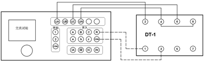 在微機(jī)繼電保護(hù)測試儀交流試驗中,設(shè)定Ua、Uc輸出額定電壓接入兩線圈,繼電器不動作,但斷開任一線圈繼電器即動作,說明2、6為同極性端子,否則2、4為同極性端子。
