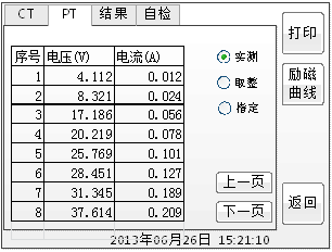 智能互感器測試儀的勵磁數(shù)據(jù)。