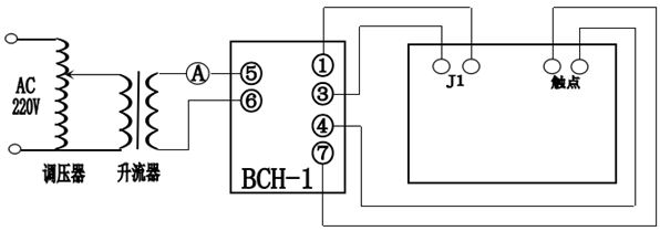 按上圖接線,斷開(4)(6)端子的連接片,動(dòng)作回路取39匝,制動(dòng)回路取14匝,調(diào)壓器(較大容量5KVA以上)和本儀器使用同-220V電源時(shí),升至電流到要求的安匝,按交流繼電器的方法做出動(dòng)作電流。如果動(dòng)作安匝安全不對(duì),可能是制動(dòng)電流和動(dòng)作電流的相角是180度,把制動(dòng)電流反相就好了,如果本儀器使用三相電中的一相,調(diào)壓器使用另外一相,通過改變相別的將升流器正接反接可得到60°的相角。如外接移相器,亦可得到全部的0°、30°、60°、90°的相角。