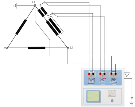 智能互感器測試儀在三角形接法變壓器上進行CT測試的接線方式如圖18所示。