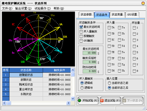 微機繼電保護測試儀(鍵盤版)設置狀態條件,微機繼電保護測試儀(鍵盤版)試驗步驟3:設置狀態條件。