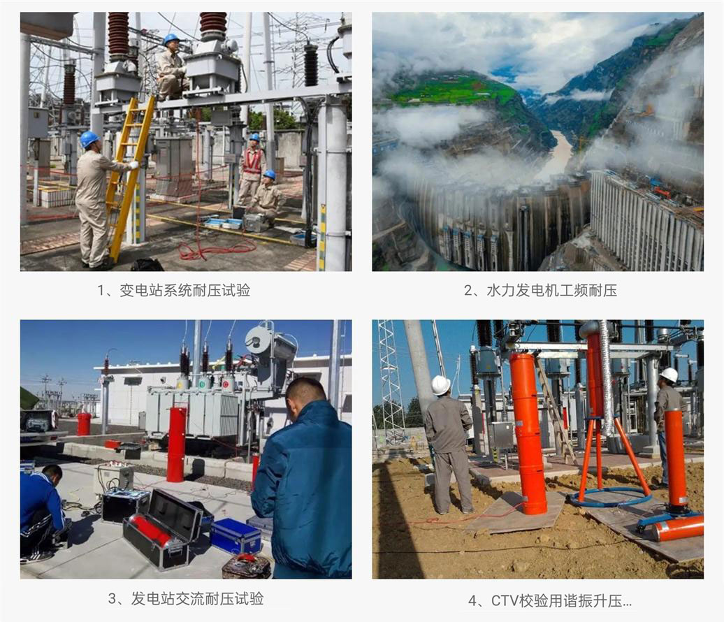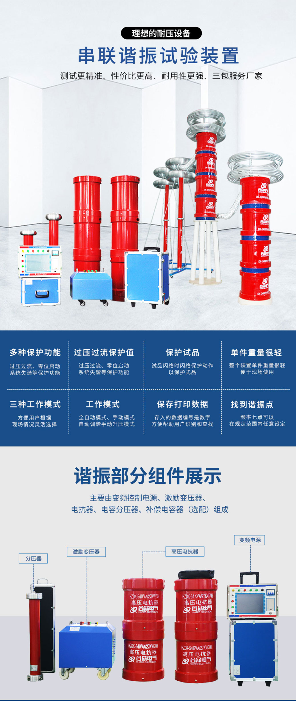 *該裝置主要由變頻控制電源、激勵變壓器、電抗器、電容分壓器、補償電容器(選配)組成。