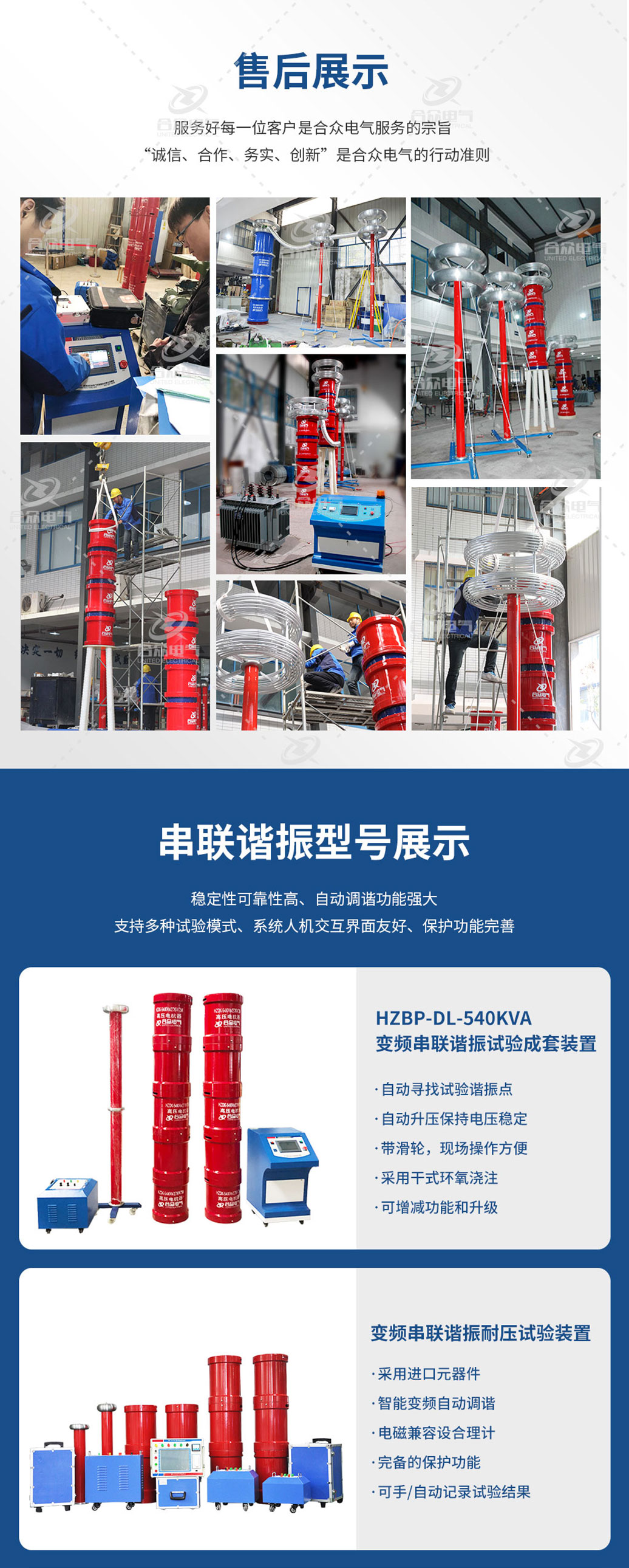 合眾電氣作為串聯諧振生產制造的老廠家,研發技術底蘊深厚,售后服務體系完備完善,目前已為千余家客戶提供過串聯諧振相關售后服務。
