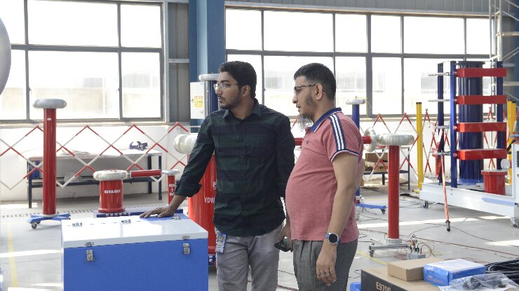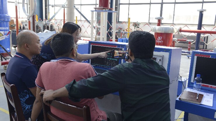 在武漢市合眾電氣技術團隊的陪同下,孟加拉客戶深入參觀了智能化生產車間與高壓實驗室。客戶重點觀摩了局部放電測試系統的現場演示,對其高精度檢測能力與抗干擾性能表示認可;在沖擊電壓發生器測試區,設備穩定的波形輸出與模塊化設計引發了客戶濃厚興趣??蛻衄F場表示:"合眾電氣的全流程質量控制體系與國際標準接軌,完全符合孟加拉電網試驗項目的嚴苛要求。"