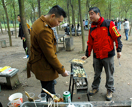 武漢的冬季已經(jīng)充滿寒意,特別是剛下過雨之后。但在農(nóng)耕年華卻是另外一番景象。幾組朝氣蓬勃充滿活力的團(tuán)隊正積極地準(zhǔn)備著燒烤的食材。大家積極配合,一起動手,忙中透著輕松快樂的氣氛。